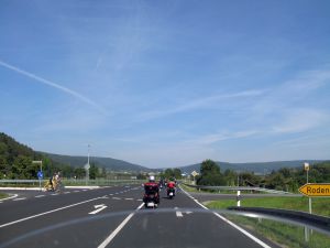 Roller und ein Motorrad weiter Richtung Aschaffenburg.