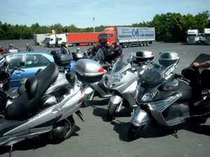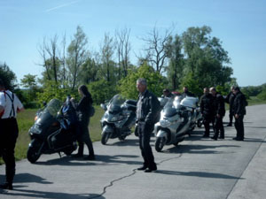 09:30 Uhr startete die Gruppe bestehend aus: 9 Rollerfahrern, einer Rollerfahrerin und zwei