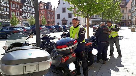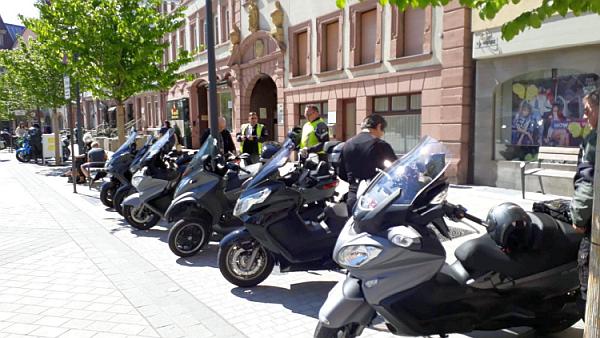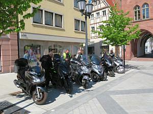Zweiräder auf dem Marktplatz am Rathaus ab.