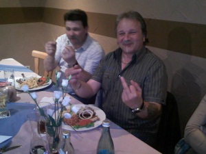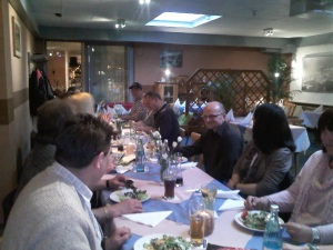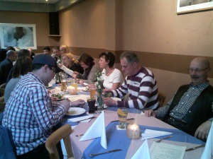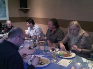 Rollerfreunde zu ihrem ersten Stammtisch im Restaurant