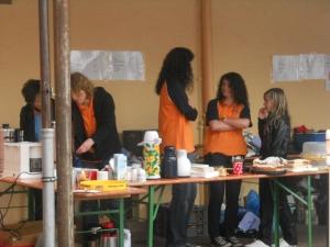 durchnässt genossen wir erst einmal einen warmen Kaffee.