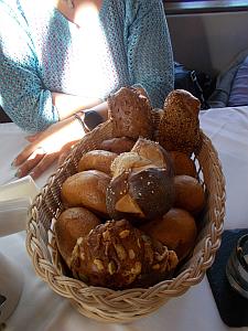 eine kleine Vorspeise bestehend aus Brot und Quark serviert. Als